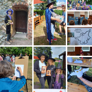 Bei Sonnenschein und Wärme fanden viele Gäste am Freitagnachmittag den Weg in unseren Schulgarten. Hier erwartete sie nicht nur Kaffee und Kuchen, sondern viele kleine Stationen zum Mitmachen. Es sollte das Gewicht eines Apfels geschätzt werden oder man konnte sein Wissen über die Kartoffel testen. Es wurde gebastelt, experementiert und bei der Baumralley sollte man nicht nur die richtigen Bäume finden, es mussten auch Fragen richtig beantwortet werden. Sehr beliebt war unter anderem die Wasserfilterstation.